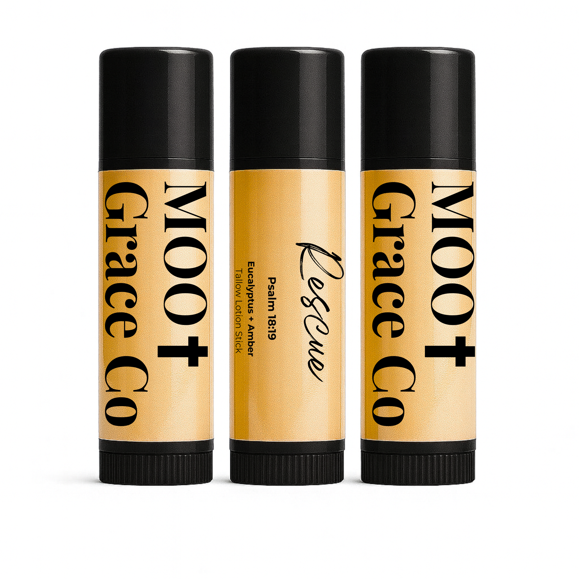 Crafted with grass-fed tallow, organic beeswax, and clean, non-toxic fragrance oils — always free from harmful chemicals. This deeply nourishing blend restores your skin while gently reminding your heart that God delights in rescuing you, holding you, and bringing you into peace.
